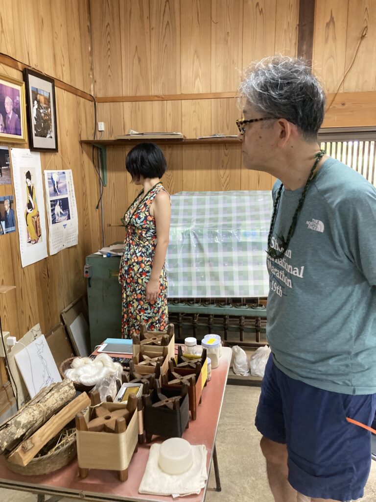 黄八丈染め元めゆ工房では、黄八丈の染め方を学べます。八丈島の島の名前は、黄八丈(八丈絹)が由来です。
