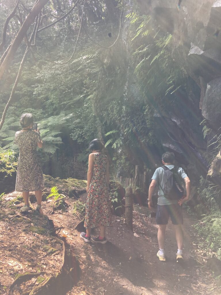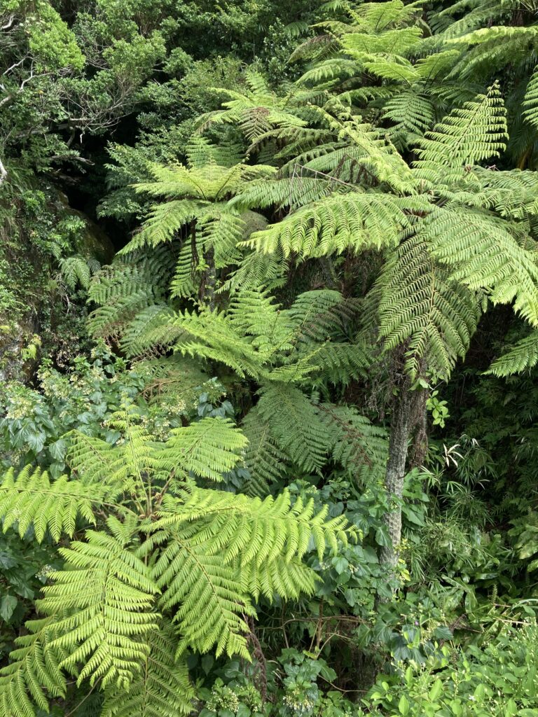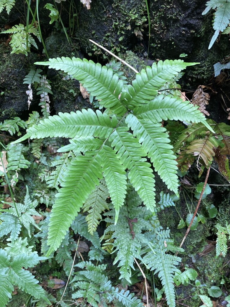 裏見ヶ滝は、ヘゴが美しく元気でした。ハチジョウシダやアオノクマタケランやモンステラなどを観察。