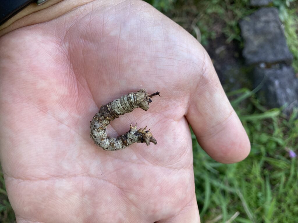 登山道を登り始めるとモスラに出会いました!蛾の幼虫ですね。可愛いです。