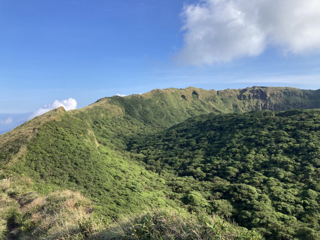 稜線まで登ってくると、絶景のお鉢と稜線が目に飛び込んできました!
