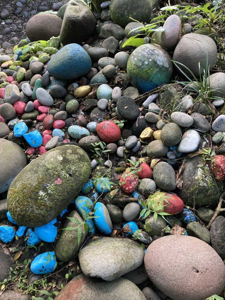 浅間神社には保育園児が持ってきた玉石がたくさんあります。