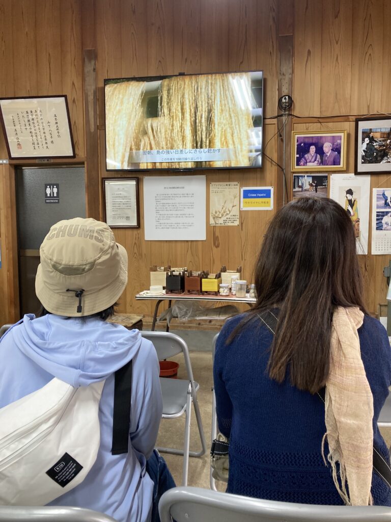 玉石垣、横間ヶ浦海岸、大坂の展望を経て、喜八助染め元のめゆ工房へ。