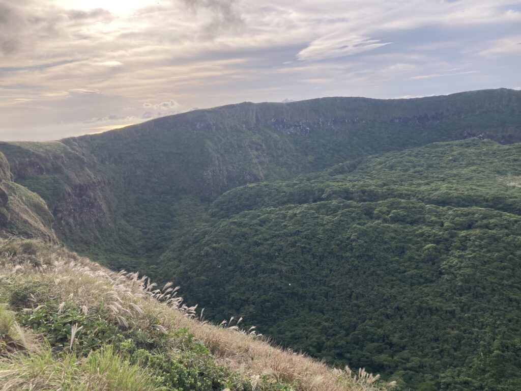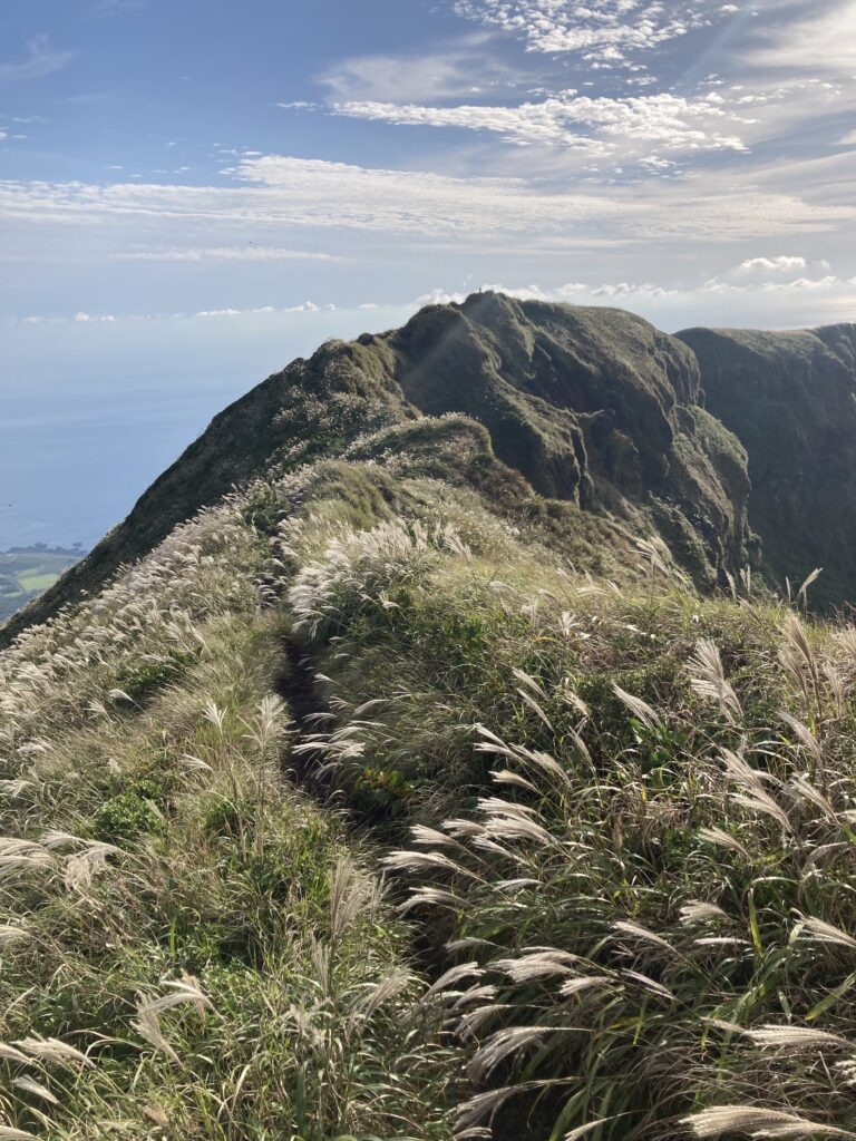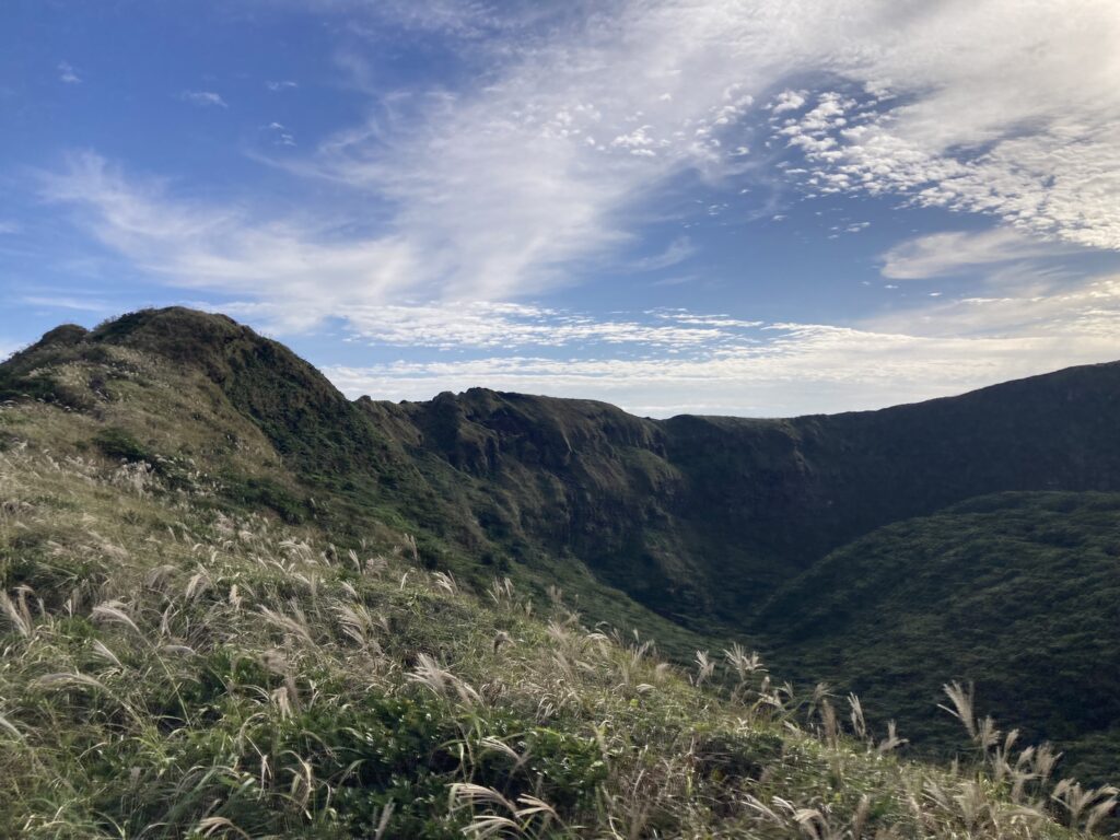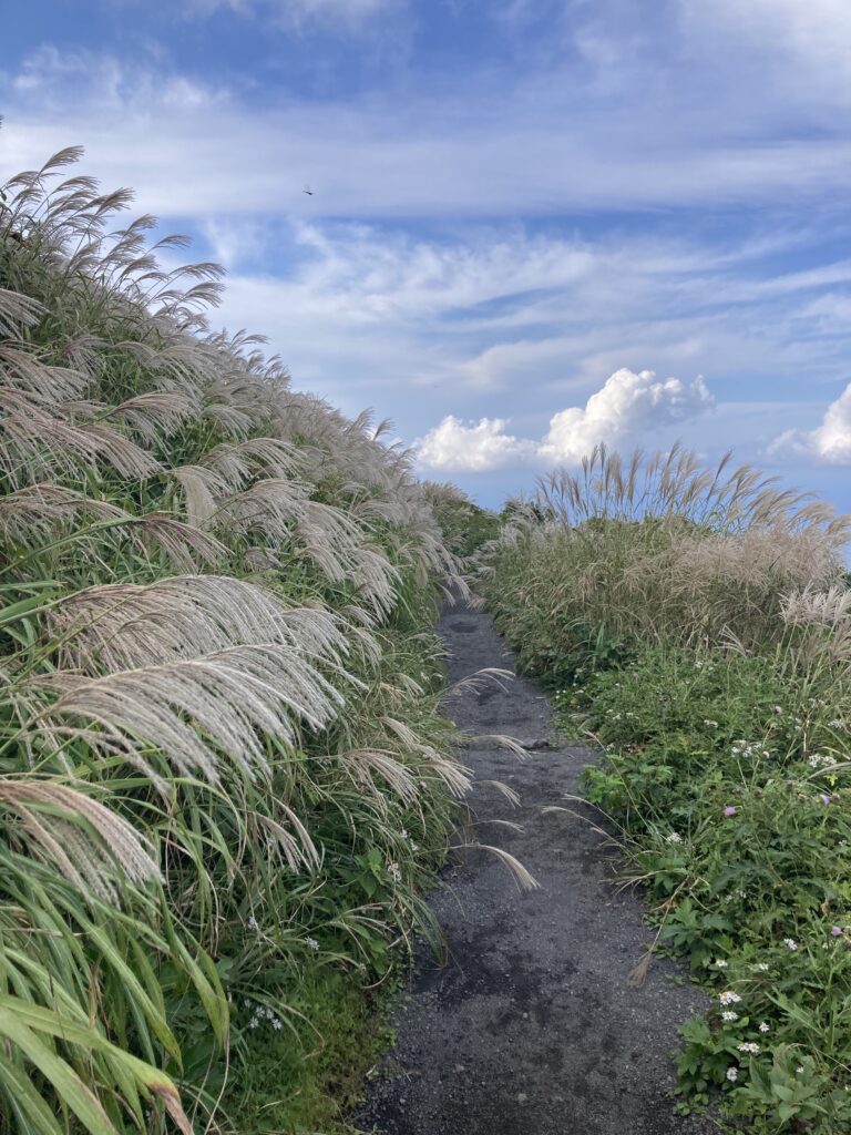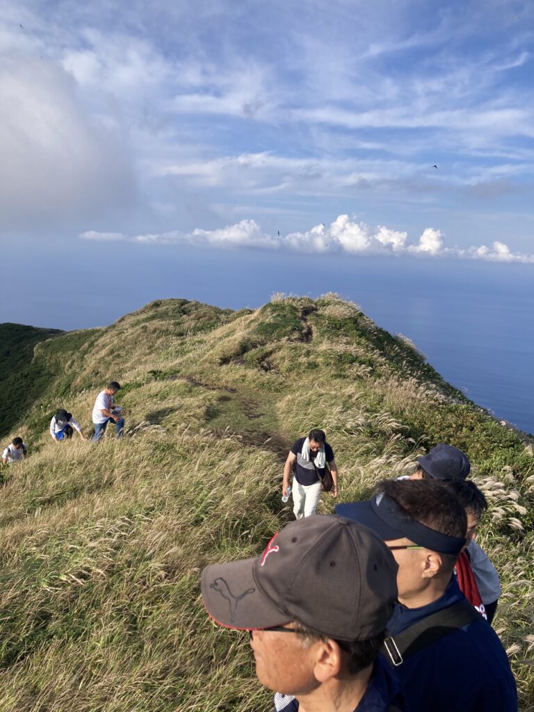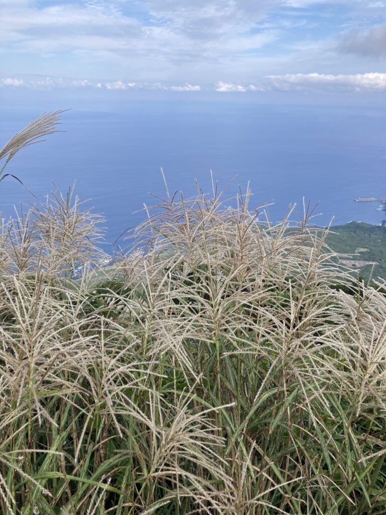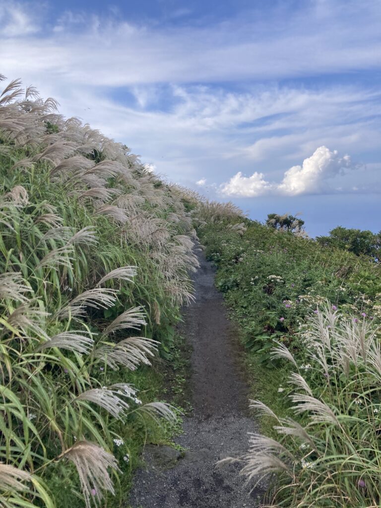 稜線からは秋の雲が上空に広がり、八丈島の風も秋風に変わってきていました。