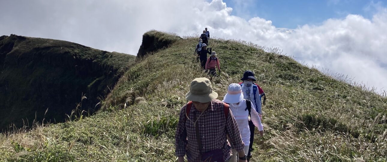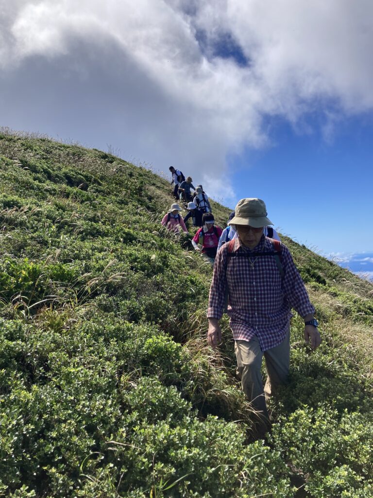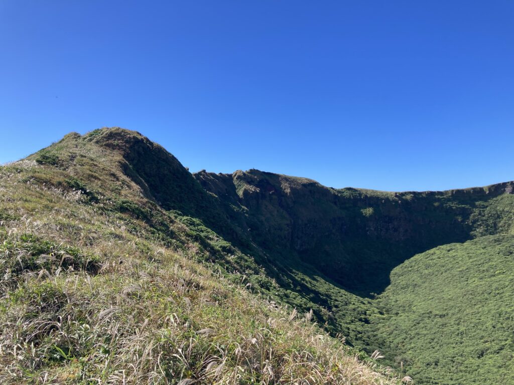 コシオガマやノコンギクやナンバンギセルなどを観察しながら稜線まで登って行くと、絶景のお鉢と稜線が目に飛び込んで来ました。