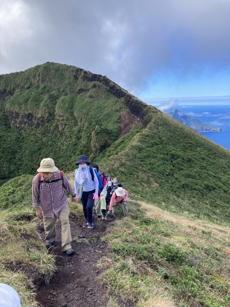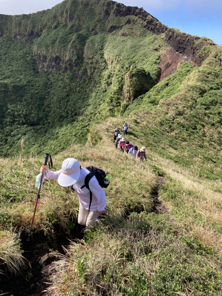 稜線の美しさだけでなく、お鉢の中や八丈小島などの絶景の景色を眺めながら、一歩一歩お鉢巡りを進みます。
