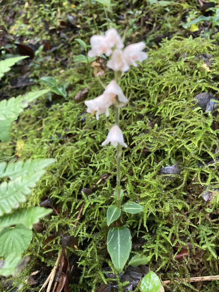 シュスランやサルオガセやコウヤコケシノブなどを観察し、池塘の脇を歩きます。