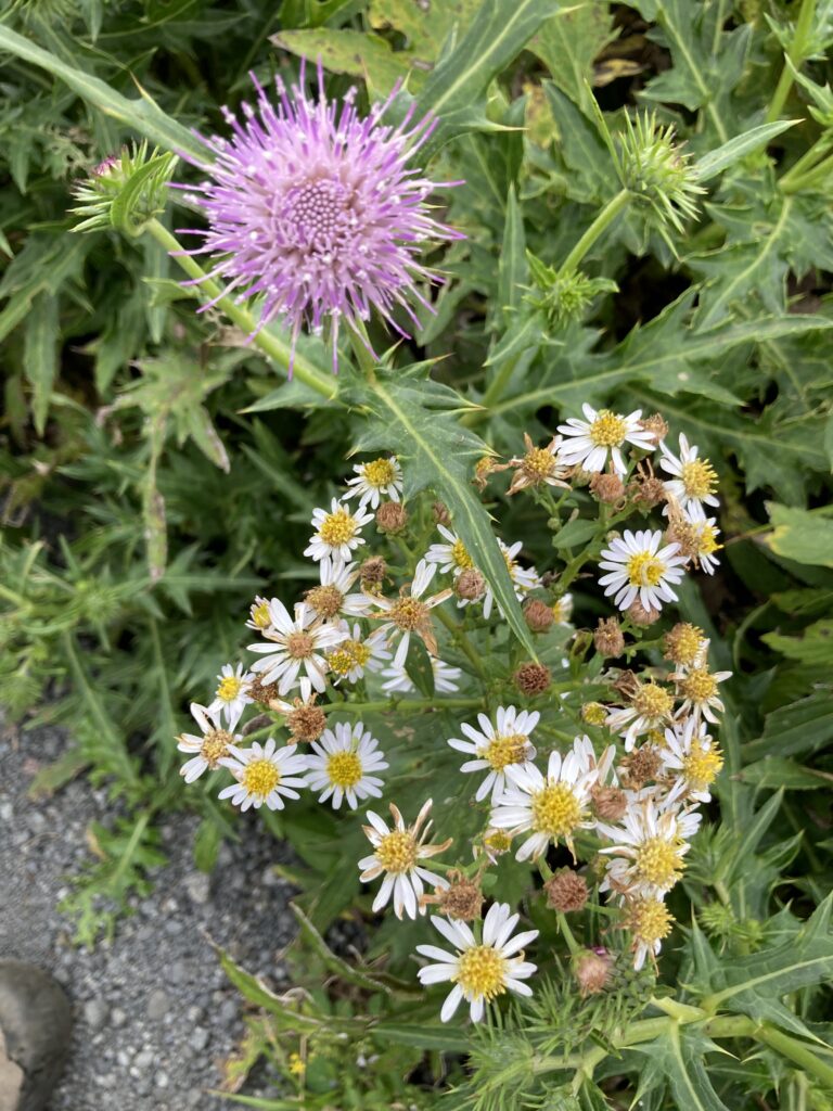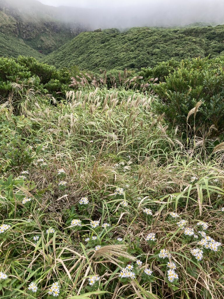 八丈富士登山道にはコシオガマやハチジョウアザミやノコンギクやナンバンギセルが咲いていました。