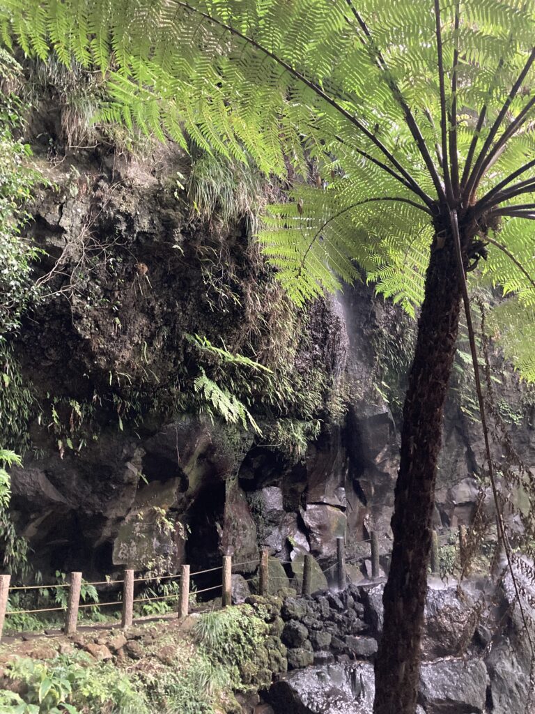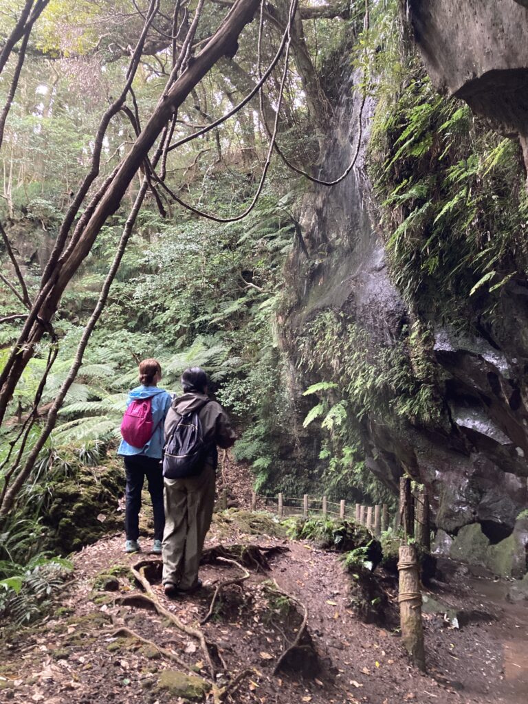 裏見ヶ滝は凛とした空気が張り詰め、マイナスイオンに満ちていました。ヘゴが雨露に濡れて元気でした。