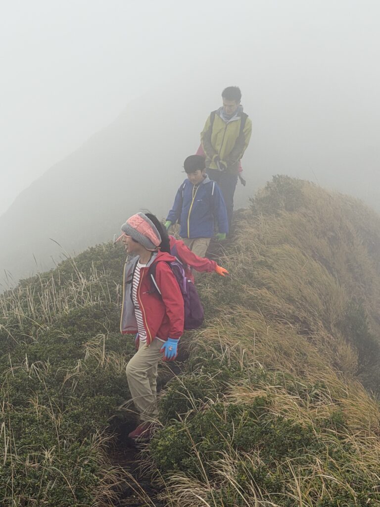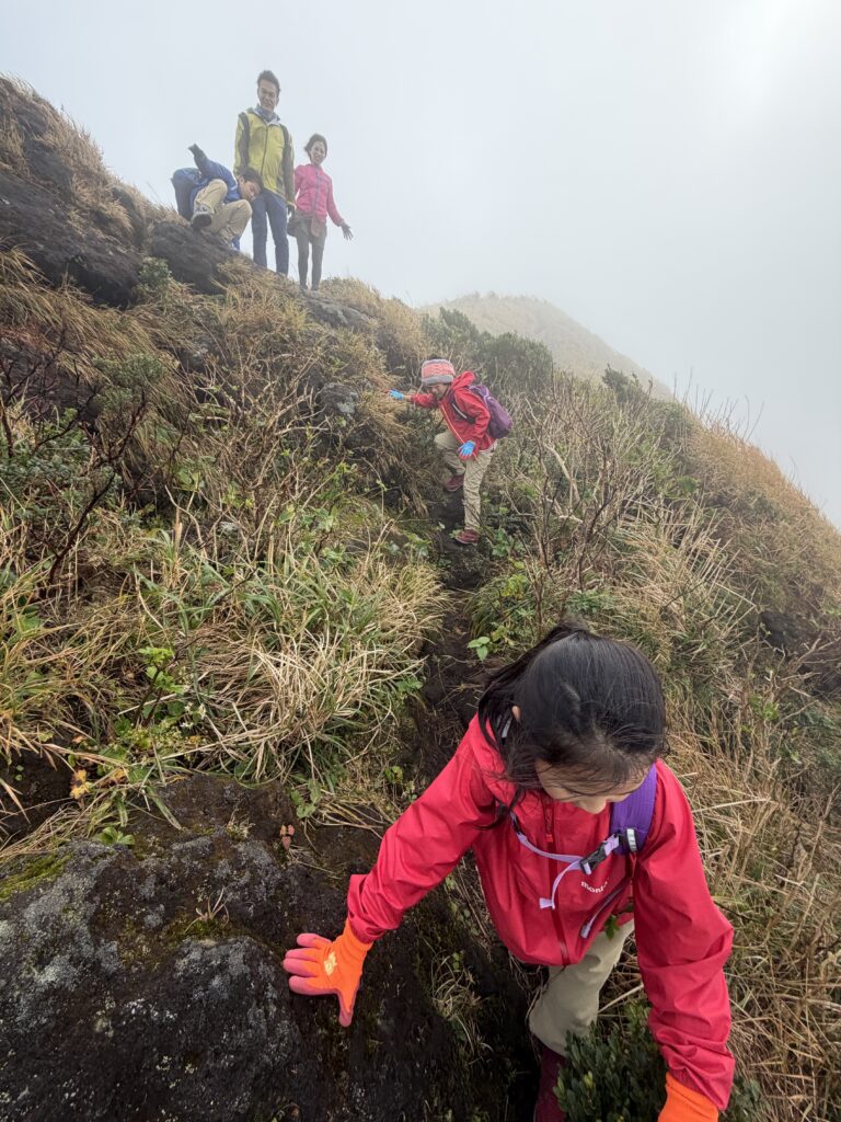 稜線まで登ってくると、ガスに覆われて少し風がありました。