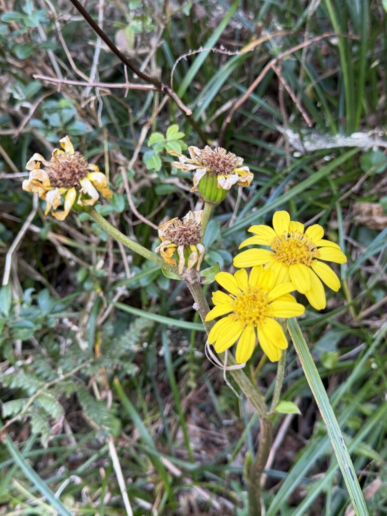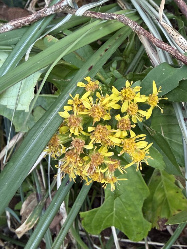 登山道では、ハチジョウアキノキリンソウ、ツワブキ、イズノシマダイモンジソウ、ノコンギクなどの花が咲いています。