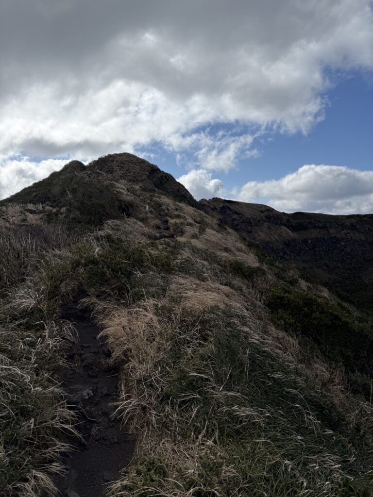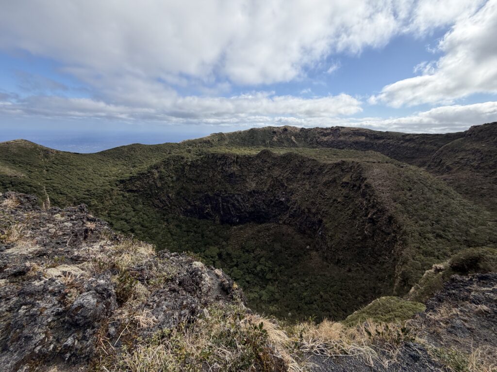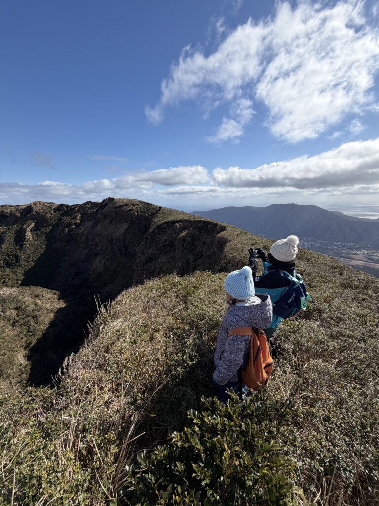 絶景のお鉢と稜線が目に飛び込んできました。青空と太陽の暖かさが身に沁みます。