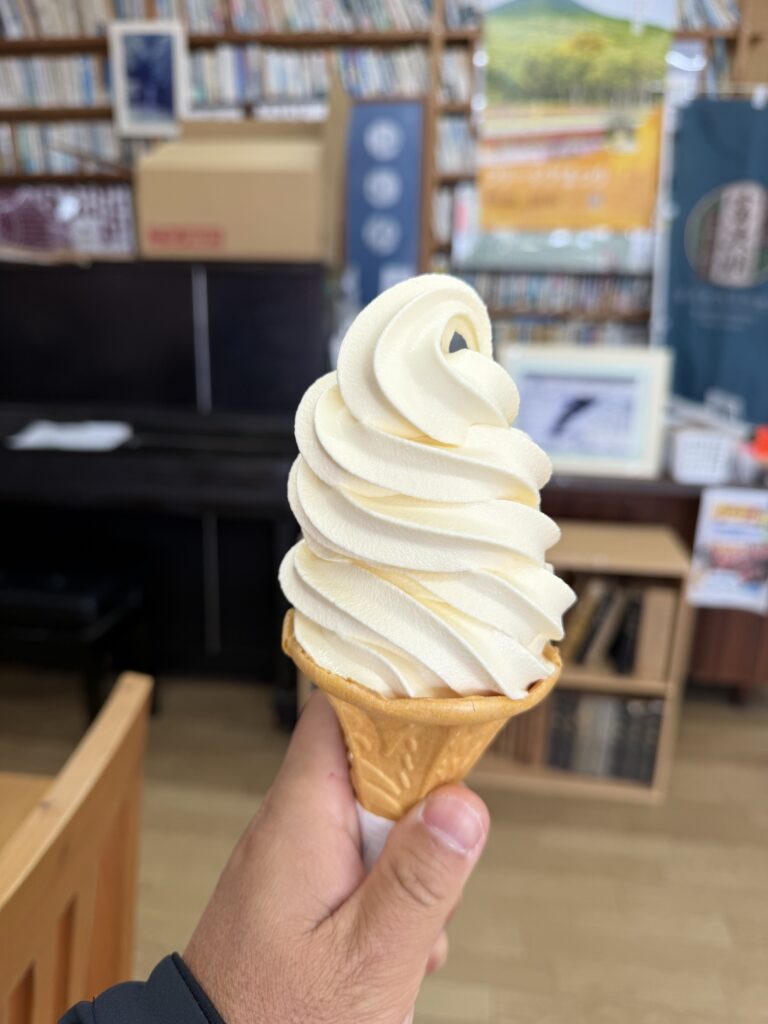 玉石垣、横間ヶ浦海岸、大坂の展望を経由して、むかしの富二朗でアイス休憩です。