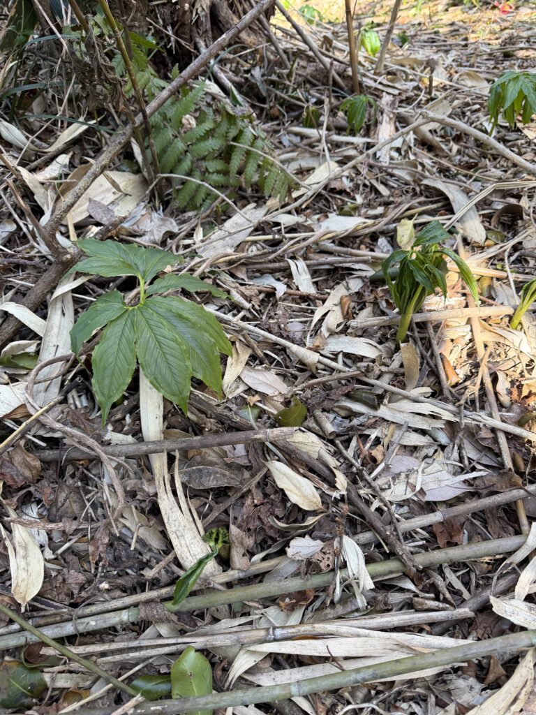 シマテンナンショウ(島天南星)の新芽があちこちで顔を上げてきています。