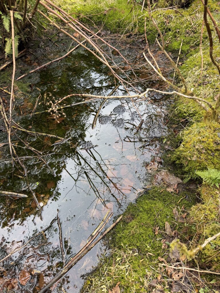 僅かに残る池塘の水にニホンアカガエルの卵が産み付けられていました。