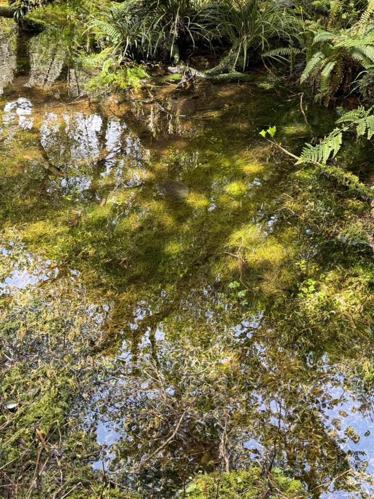 浅間神社の山道傍の池塘では水が増えていました。ニホンアカガエルの卵が見られました。