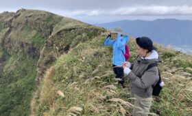 足湯から南原千畳敷へ移動すると島の農家の友人がクジラ情報を教えてくれました。